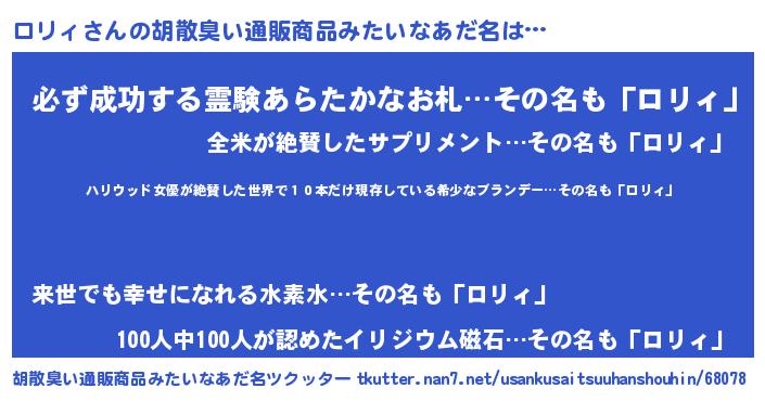 | ヘコむあだ名 | 『ロリっふぃ~』『ロリぷりん』 |