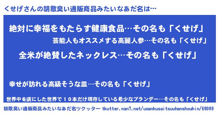 | 意味不明あだ名 | 『とにかく怪しいくせげ』『自称くせげ』 |