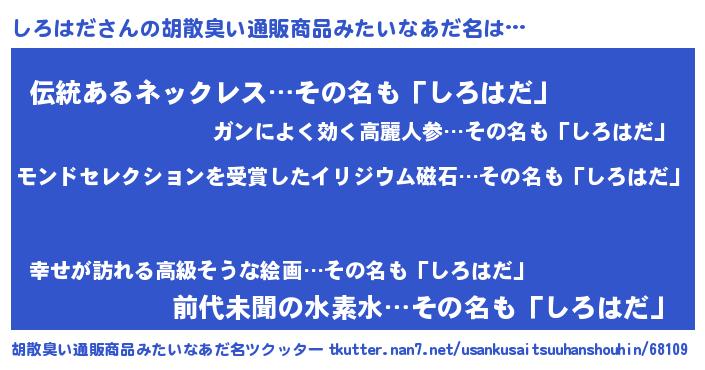 | ヘコむあだ名 | 『しろっぺ』『しろはだ(苦笑)』 |