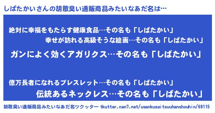 | 意味不明あだ名 | 『自称しばたかい』『永久保存しばたかい』 |