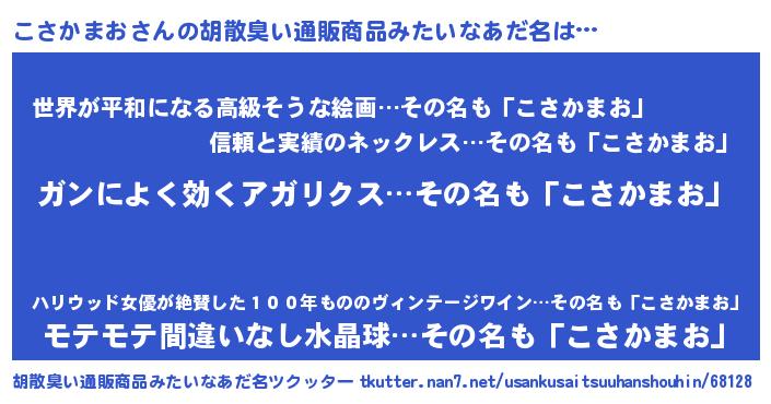 | ヒーロー風カッコイイあだ名 | 『超時空戦士コサカマオ』『幻影騎士コサ』 |