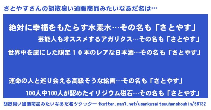 | 意味不明あだ名 | 『住所不定無職さとやす(68歳)』 |
