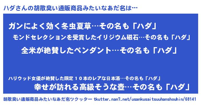 | 意味不明あだ名 | 『とにかく怪しいハダ』『自称ハダ』 |