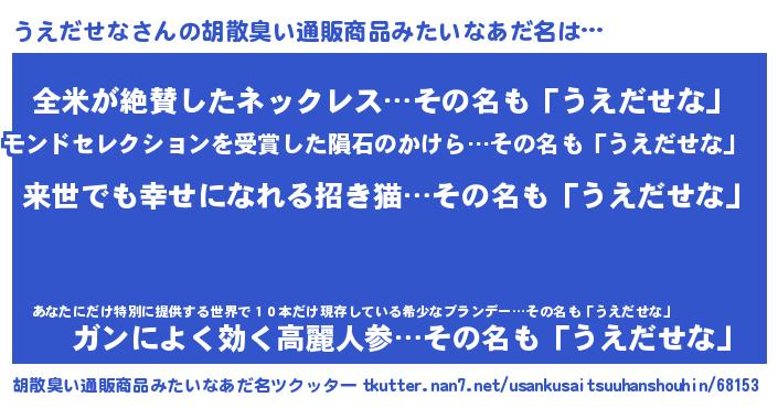 | 意味不明あだ名 | 『永久保存うえだせな』『自称うえだせな』 |
