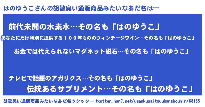 | 欧米人風あだ名 | 『アンジェラ・はのゆうこ』 |