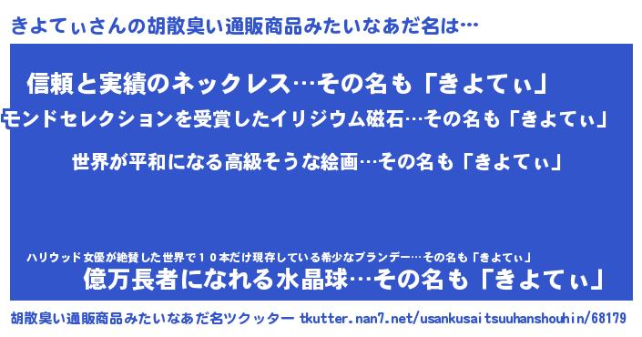 | 意味不明あだ名 | 『きよてぃフォーエバー』 |