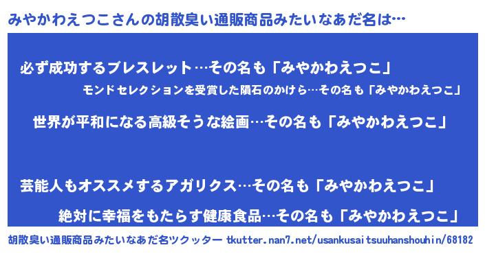 | 肩書あだ名 | 『みやかわえつこ総理大臣』 |