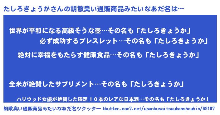 | 意味不明あだ名 | 『永久保存たしろきょうか』 |