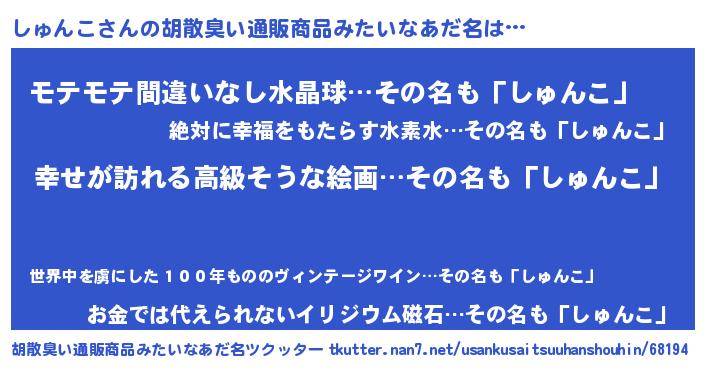 | 女子向けラノベタイトル風あだ名 | 『しゅんこの雑貨屋さん』 |