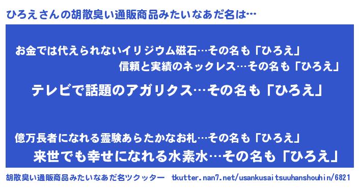 | ヒーロー風カッコイイあだ名 | 『サイバー戦士ヒロエ』『愛の使者ひろえ』 |