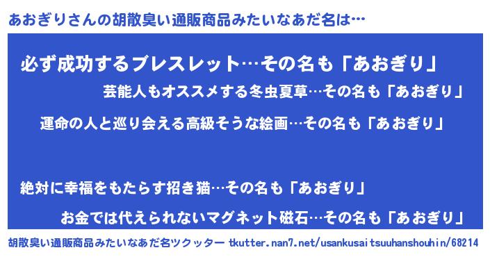 | ヒーロー風カッコイイあだ名 | 『ウルトラあおぎりマン』『ネオアオギリ』 |