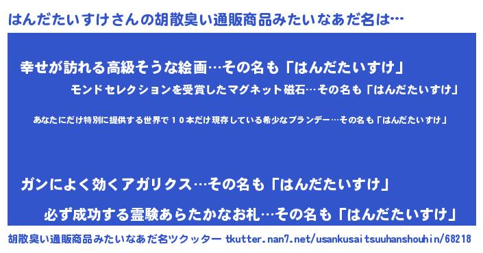 | 意味不明あだ名 | 『住所不定無職はんだたいすけ(71歳)』 |