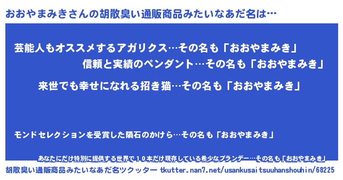 | 意味不明あだ名 | 『永久保存おおやまみき』 |