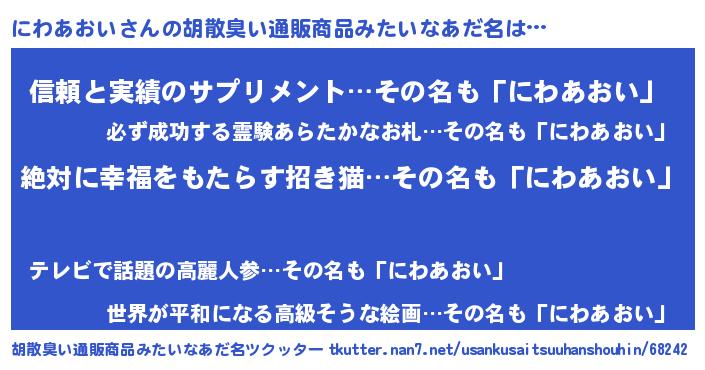 | 意味不明あだ名 | 『永久保存にわあおい』『自称にわあおい』 |