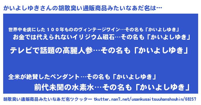 | ヘコむあだ名 | 『かいよしゆき(笑)』『かい太郎』 |