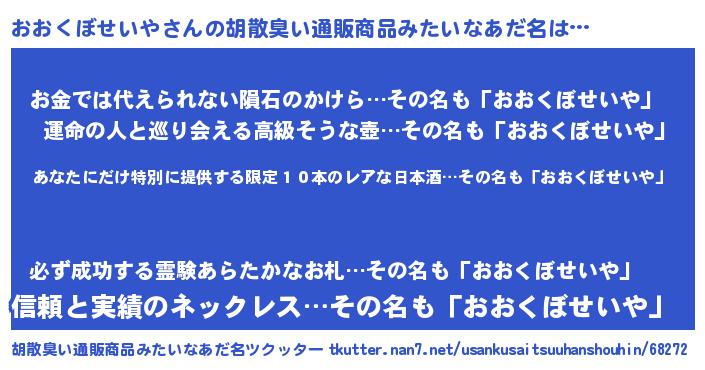 | 意味不明あだ名 | 『住所不定無職おおくぼせいや(47歳)』 |