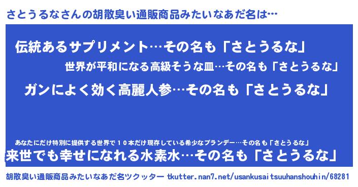 | ヘコむあだ名 | 『さとを』『さとうるな(笑)』『豆乳』 |