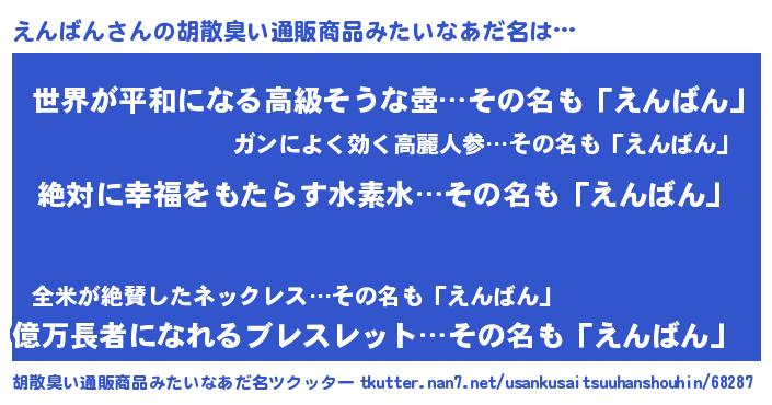| ヘコむあだ名 | 『えんばん(苦笑)』『豆乳』『えんを』 |