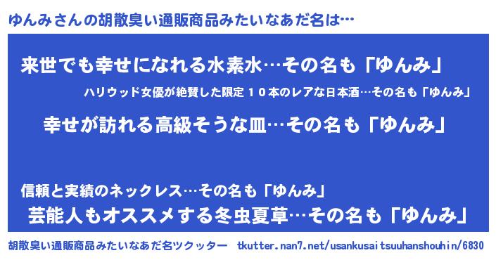 | 意味不明あだ名 | 『ゆんみフォーエバー』『永久保存ゆんみ』 |