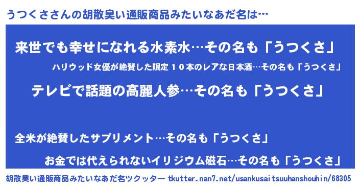 | ヘコむあだ名 | 『うつくさ(小並感)』『うつぷりん』 |