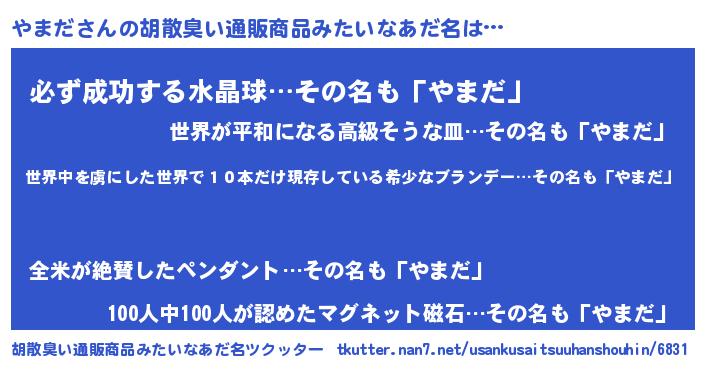 | 意味不明あだ名 | 『住所不定無職やまだ(74歳)』 |