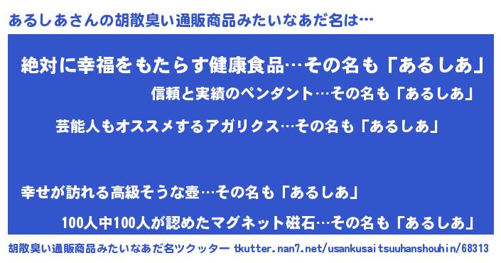 | 意味不明あだ名 | 『自称あるしあ』『永久保存あるしあ』 |