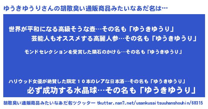 | 肩書あだ名 | 『ゆうきゆうり中将』『ゆうきゆうり社長』 |