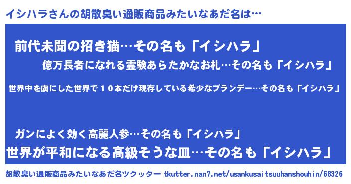 | ヘコむあだ名 | 『イシハラ(震え声)』『レバニラ』 |