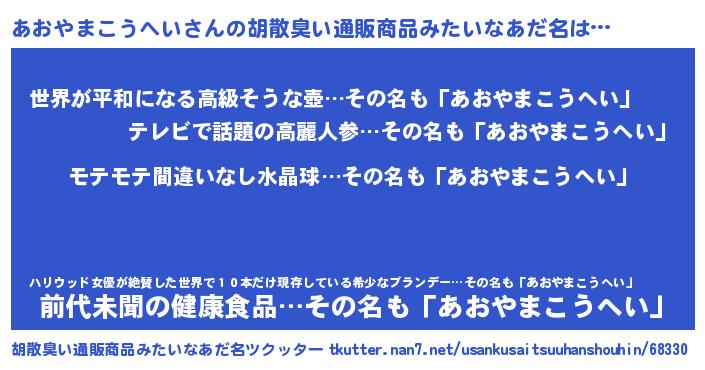 | 意味不明あだ名 | 『ペロリンあおやまこうへい』 |