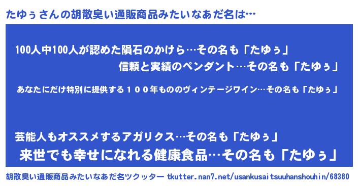 | 意味不明あだ名 | 『住所不定無職たゆぅ(4歳)』 |