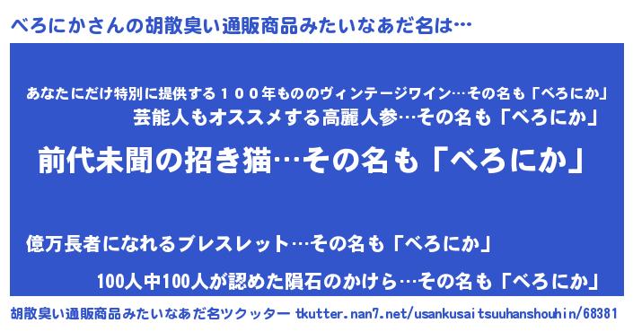 | ヒーロー風カッコイイあだ名 | 『ネオベロニカ』『仮面ベロダー』 |
