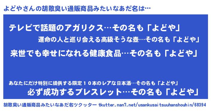 | ヘコむあだ名 | 『よどや(笑)』『よどふぇ~』『牛乳』 |