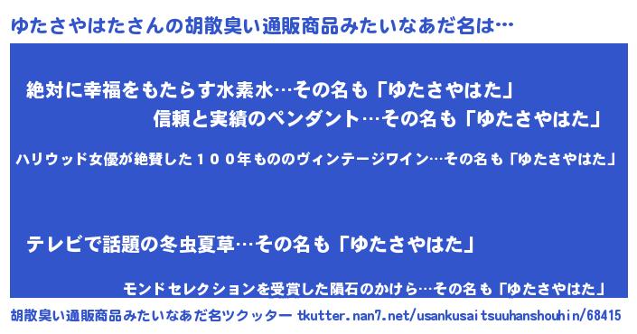 | 意味不明あだ名 | 『住所不定無職ゆたさやはた(3歳)』 |