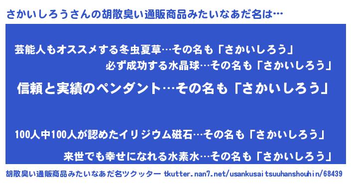 | 意味不明あだ名 | 『とにかく怪しいさかいしろう』 |