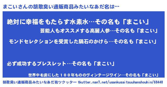 | 意味不明あだ名 | 『眠気覚ましガムまこい味』『自称まこい』 |