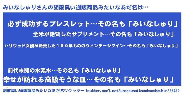| ヒーロー風カッコイイあだ名 | 『仮面ミイダー』『スーパーミイナシュリ』 |