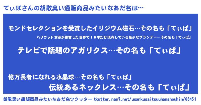 | 意味不明あだ名 | 『自称てぃぱ』『眠気覚ましガムてぃぱ味』 |