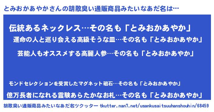 | 女子向けラノベタイトル風あだ名 | 『とみおかあやかストレイドッグス』 |