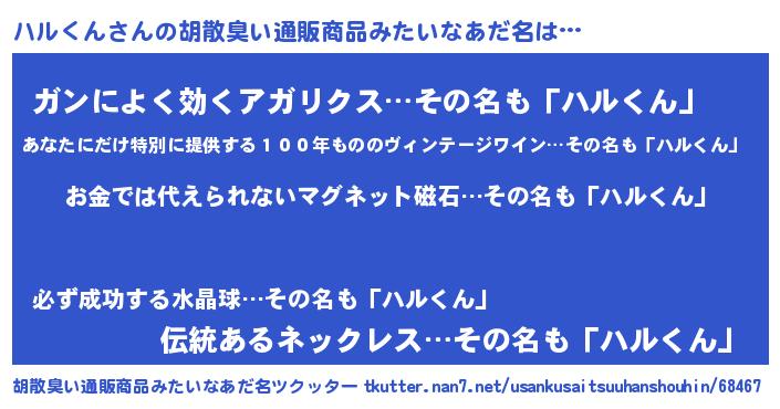 | 意味不明あだ名 | 『眠気覚ましガムハルくん味』 |