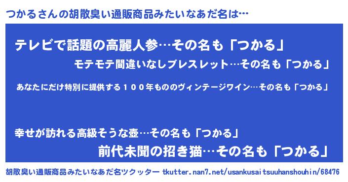| 意味不明あだ名 | 『住所不定無職つかる(10歳)』『自称つかる』 |