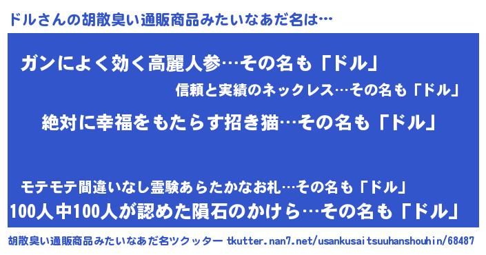 | ヘコむあだ名 | 『ドル(笑)』『ドル太郎』『つくし』 |