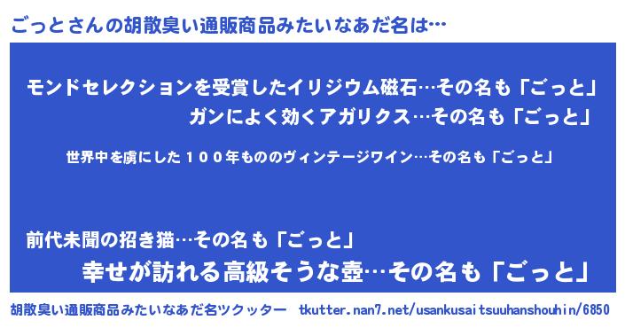 | 意味不明あだ名 | 『住所不定無職ごっと(2歳)』『自称ごっと』 |