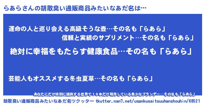 | 意味不明あだ名 | 『永久保存らあら』『らあらフォーエバー』 |