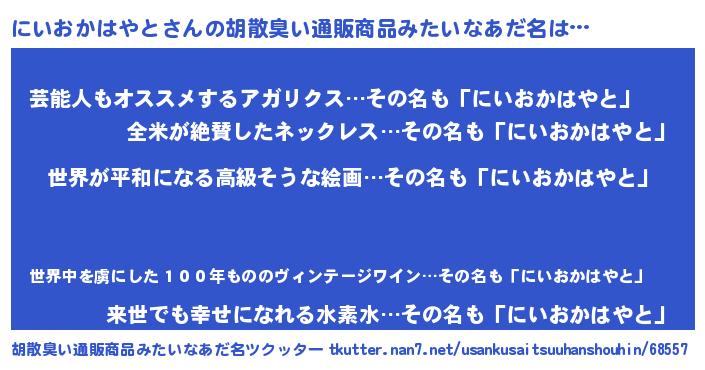 | 肩書あだ名 | 『にいおかはやと総理大臣』 |