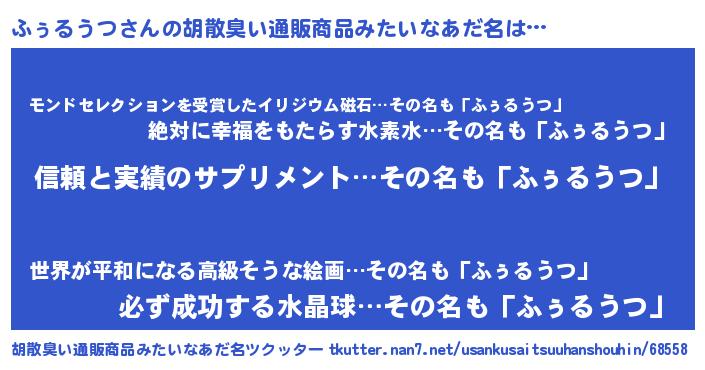 | 男性向けラノベタイトル風あだ名 | 『フゥルウツスレイヤー』 |
