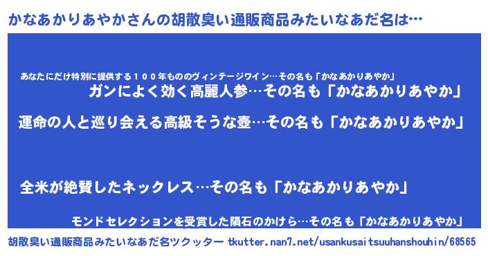 | 意味不明あだ名 | 『かなあかりあやかフォーエバー』 |
