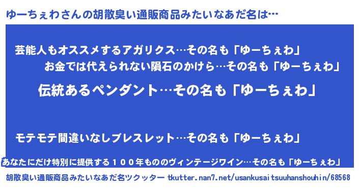 | 意味不明あだ名 | 『とにかく怪しいゆーちぇわ』 |