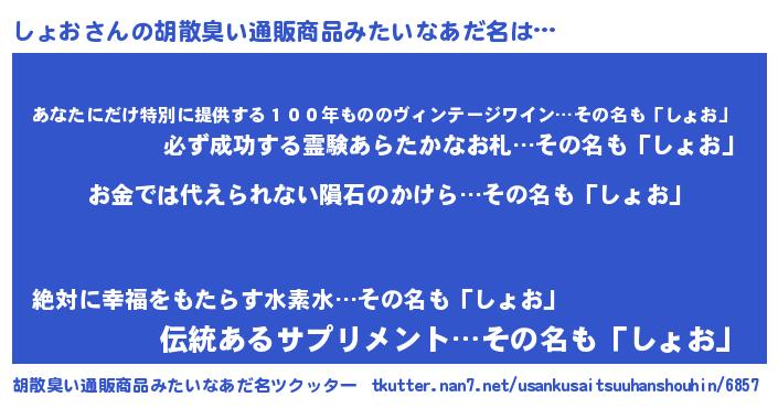 | 男性向けラノベタイトル風あだ名 | 『転生したらしょおだった件』 |