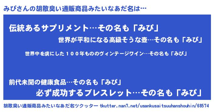 | ヘコむあだ名 | 『みぴを』『みぴふぇ~』『豆乳』 |