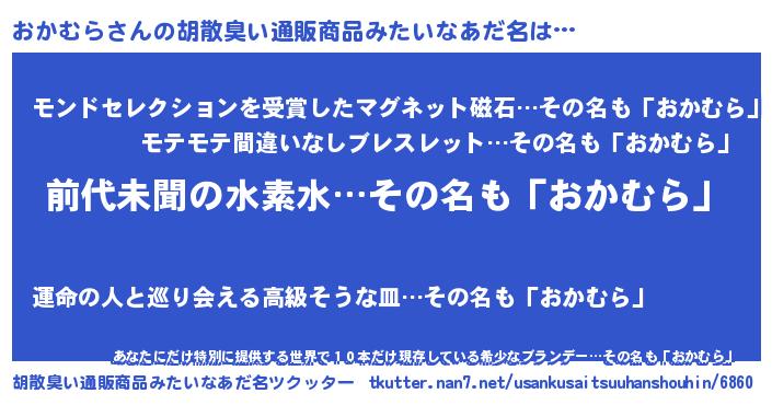 | ヘコむあだ名 | 『おかむら(苦笑)』『おかっふぃ~』 |